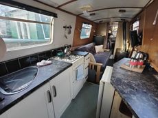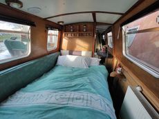 Ada Rose is a 50 foot all steel cruiser stern narrow boat built by Hancock and Lane in 1989. She is powered by an air-cooled Lister SR3 which is located under the large cruiser deck at the rear. Layout from the rear comprises of two single bunk beds with vanity basin and storage unit opposite. Following this is the shower room which opens the full width of the boat and contains a shower, Thetford C200 cassette toilet and wash basin. The saloon follows with solid fuel stove and large sofa bed which converts into a double bed. Next comes the fully fitted galley with 12v fridge, gas cooker, sink and ample storage space by way of cupboards and drawers. At the front end of the cabin is the double bedroom with fixed double bed and doors opening onto the forward well deck. Cratch and cover fitted over front well with pram hood over rear cruiser stern deck. Current Boat Safety until 2029. 240v Sterling charger installed. Survey report from 2022 showed that the hull required over plating. This was carried out professionally and to a high standard with the boat being relaunched in 2025 following completion of the works and three coats of two pack epoxy paint system applied.